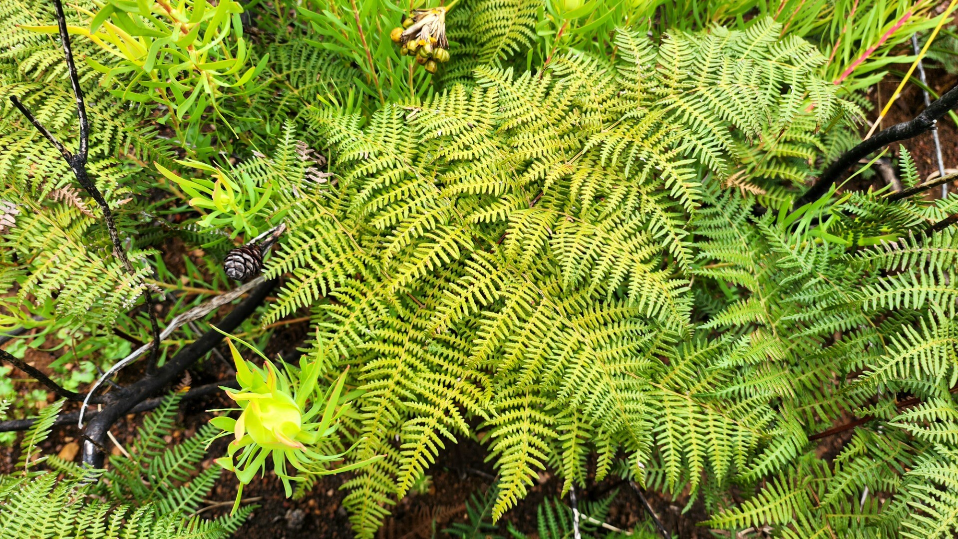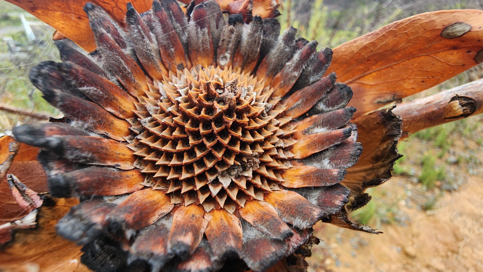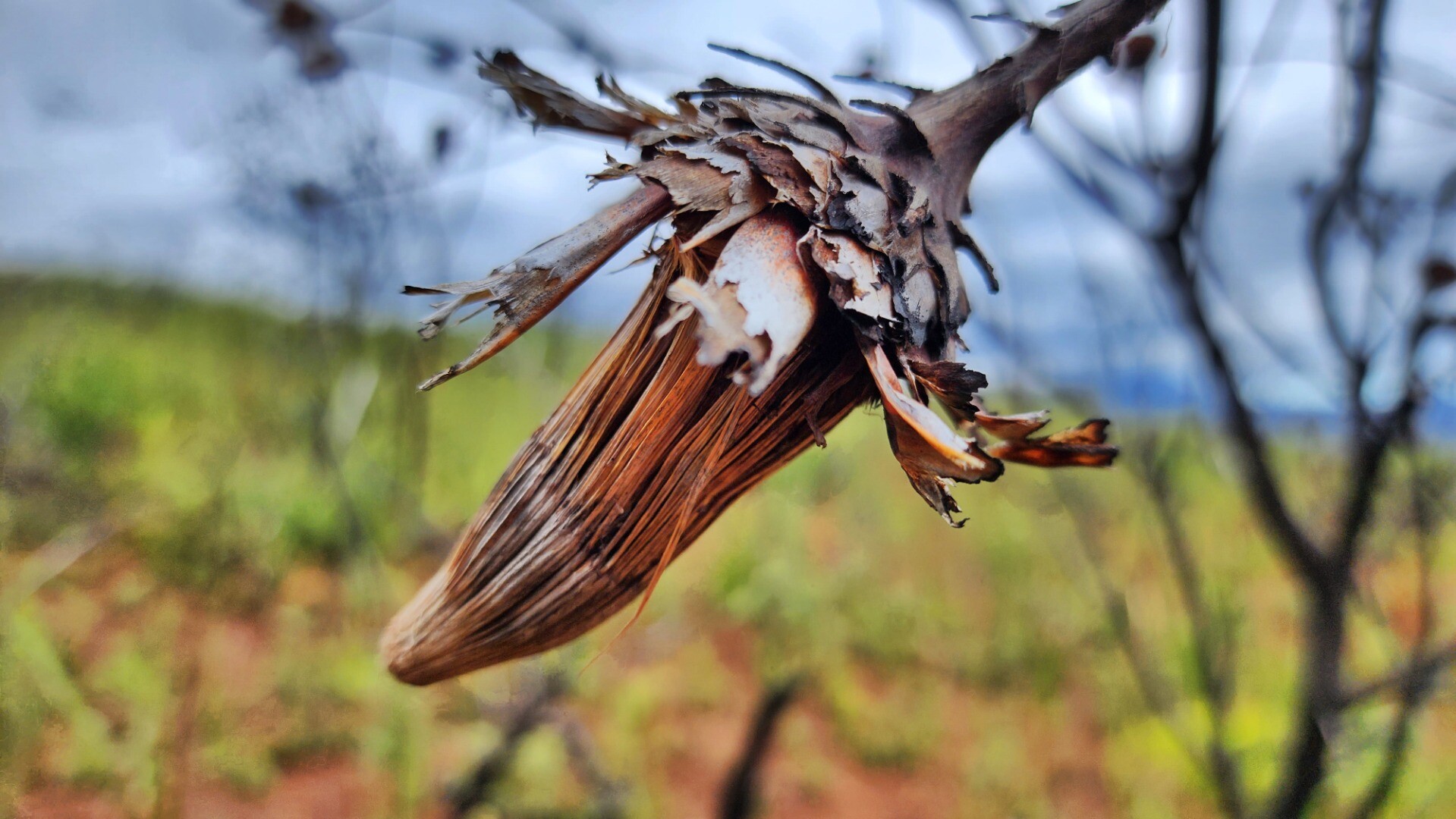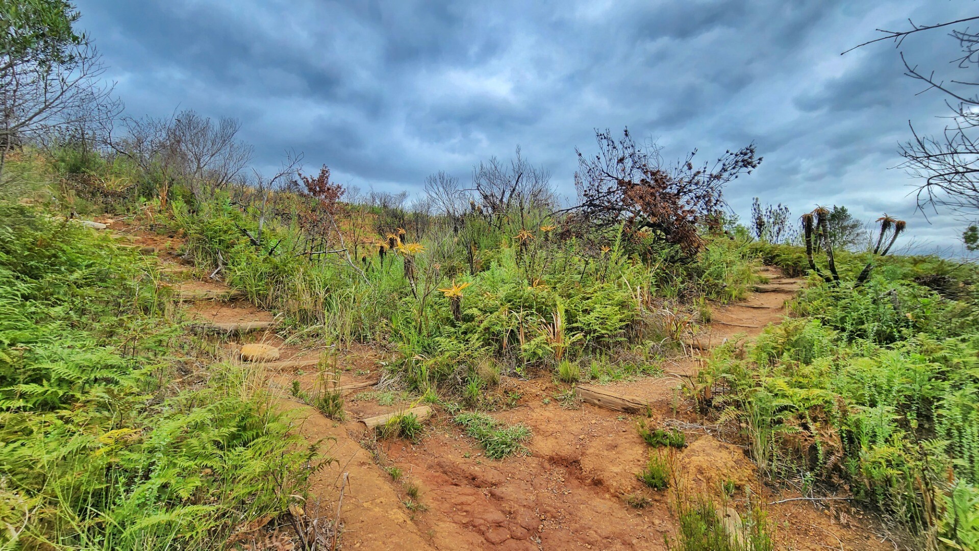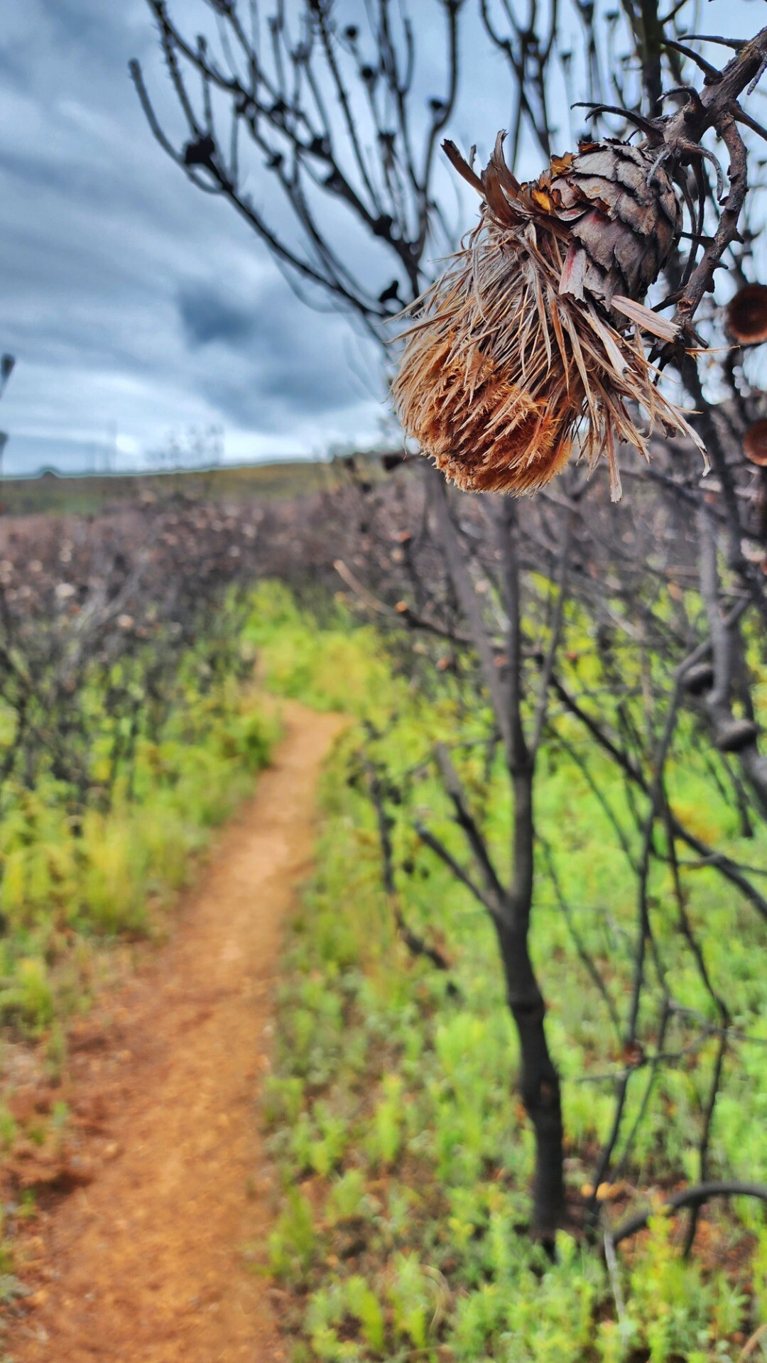 There's a lot of burned vegetation here, it looks like it was likely a controlled burn - the protea needs to burn every few years to thrive.