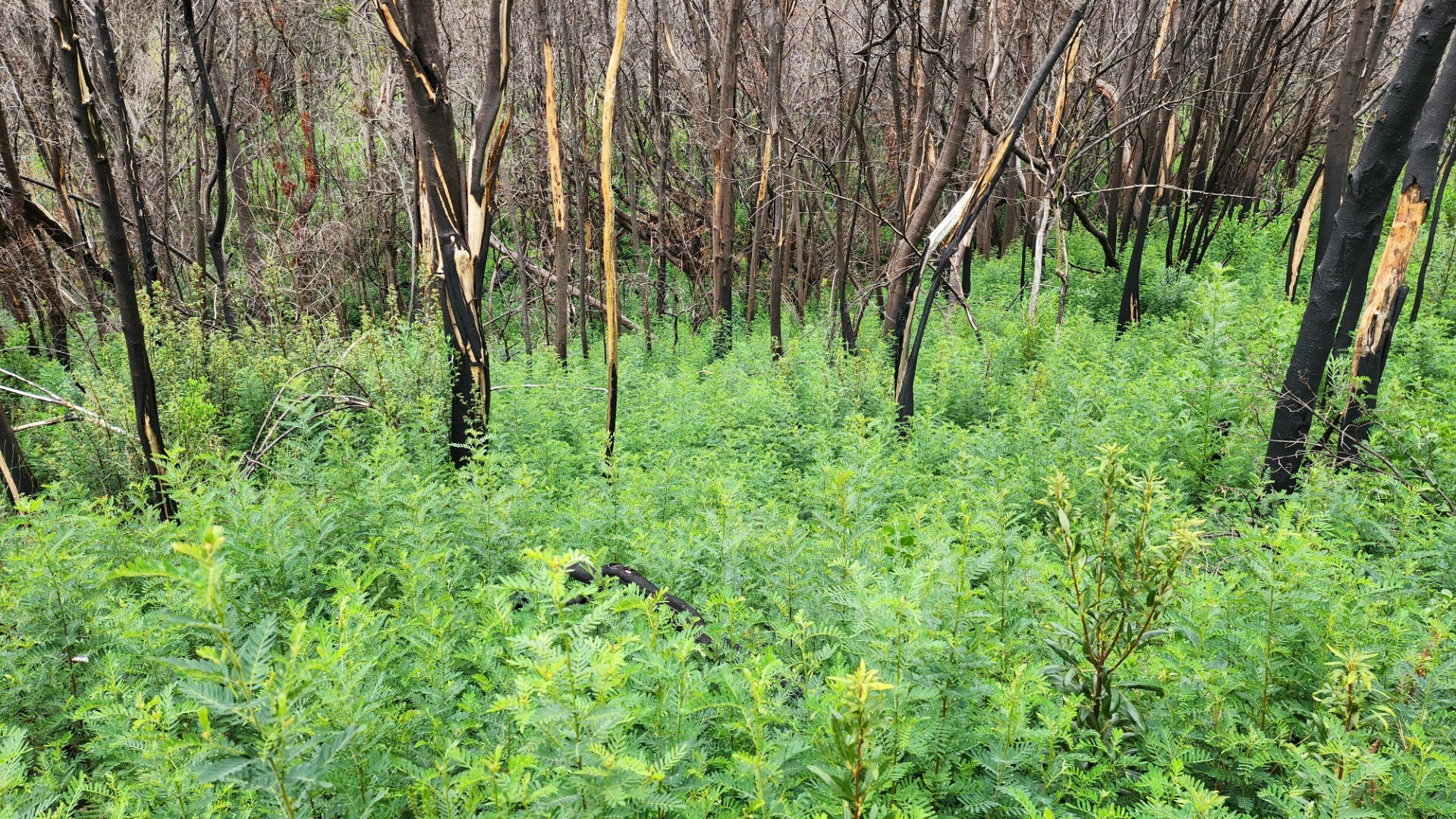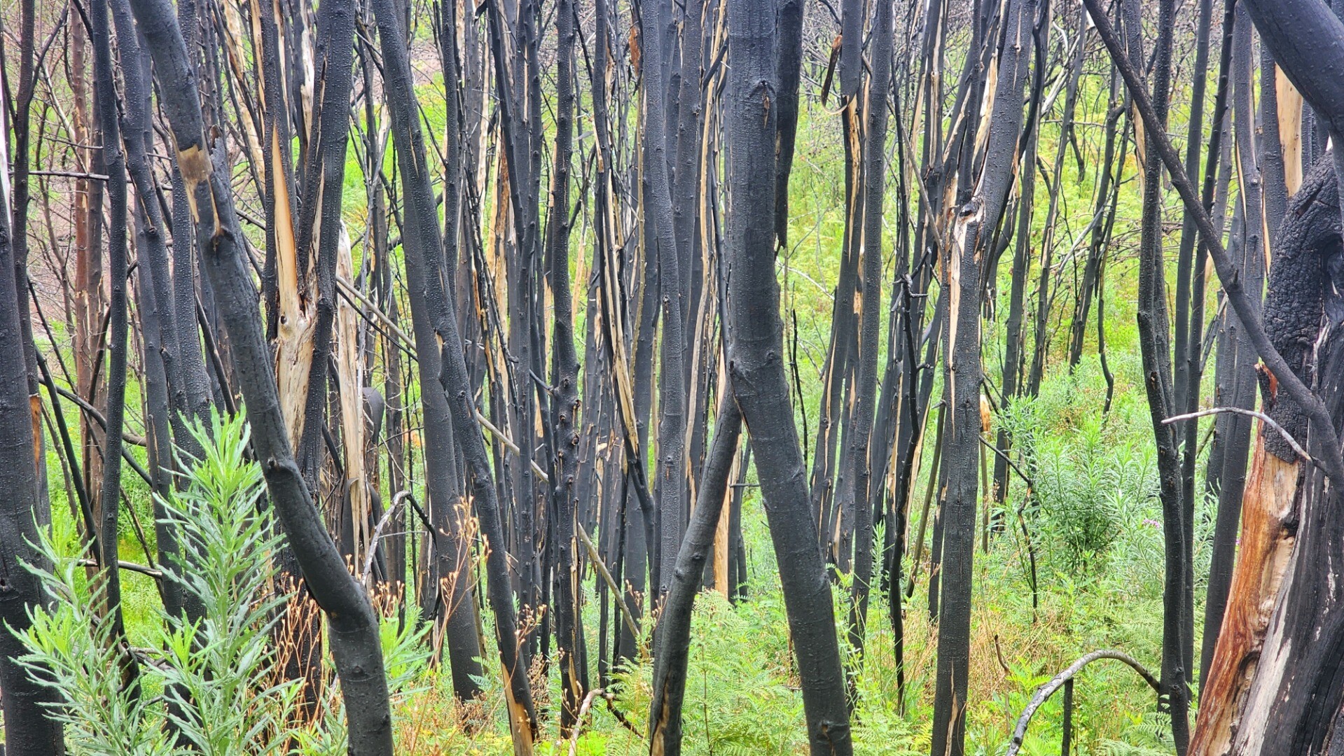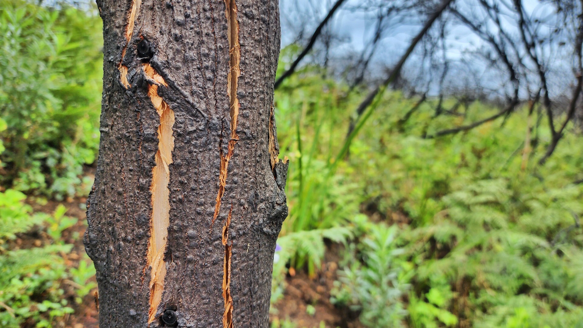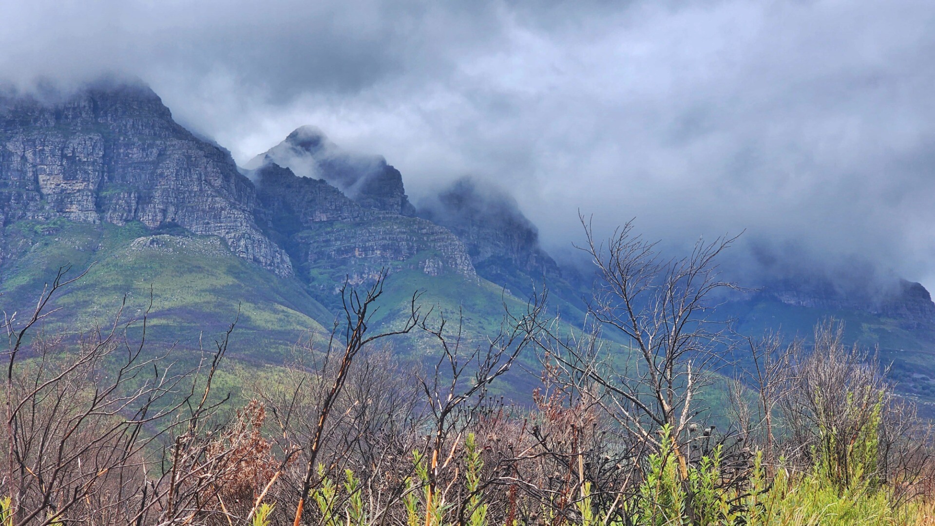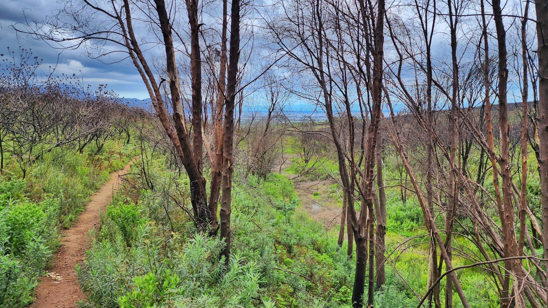 It was pretty cool seeing the black burned trunks agains the bright new growth. A lot of the new bushes are proteas that will grow to replace the burned ones.