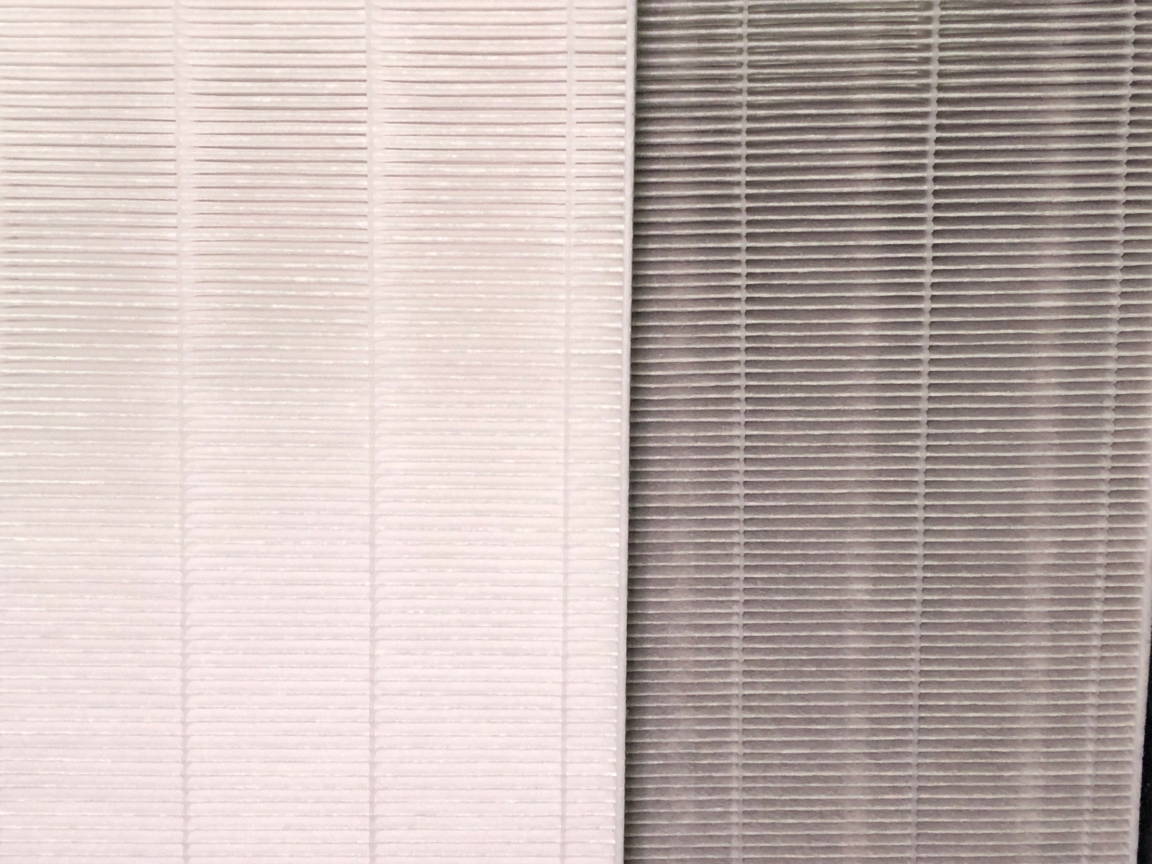 Yeah, this gray, disgusting blob here is the filter from my office, where I do my 3D printing, next to the new filter that I just changed in (I ordered the wrong size last month, had to re-order).