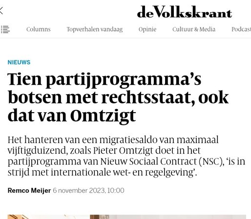 En dit is dus ook waarom je zo links mogelijk moet stemmen: alleen links wil de Nederlandse rechtsstaat en democratie intact houden. Rechts, en zeker Omtzigt, willen dat niet. En lopen je te gaslighten met "nieuwe" voorstellen terwijl we niets nieuws nodig hebben. We hebben herstel nodig. Van de rechtszekerheid, het onschuldsbeginsel, privacy, burgerrechten, natuur, inkomenszekerheid, woningcapaciteit en welvaartsverdeling.
